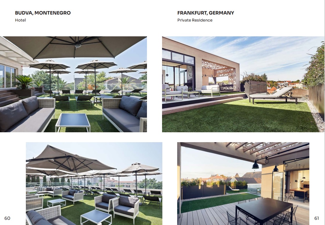 These products are designed for installation on waterproofed surfaces, existing pavements or concrete layers; directly on the ground or in courtyard spaces in general.